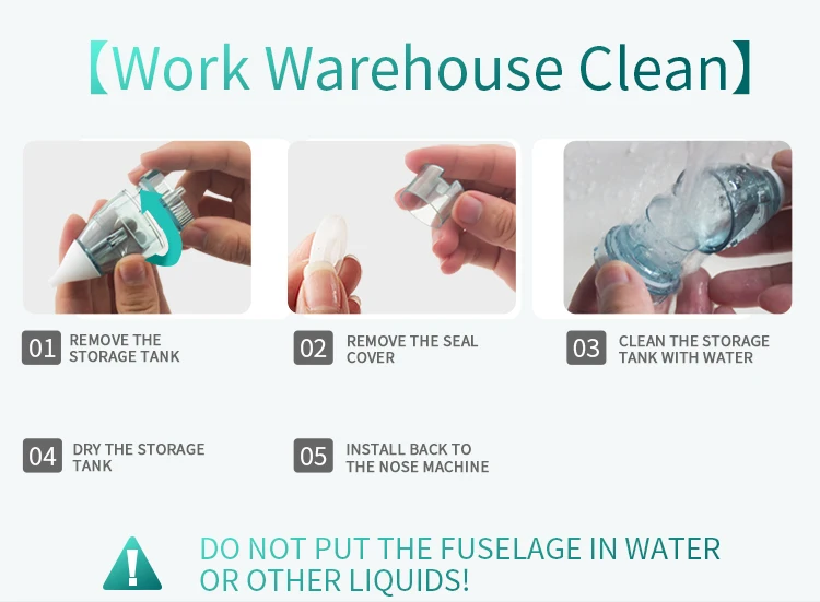 1. Before use, soak the nozzle in hot salt water for 10 minutes, then disinfect. 2. Install the nasal aspirator and turn the switch on to activate. 3. If the nasal cavity is dry, spray it into the nostrils with saline or nasal spray. The nasal spray should be exposed to the nasal cavity for 4 to 5 minutes.