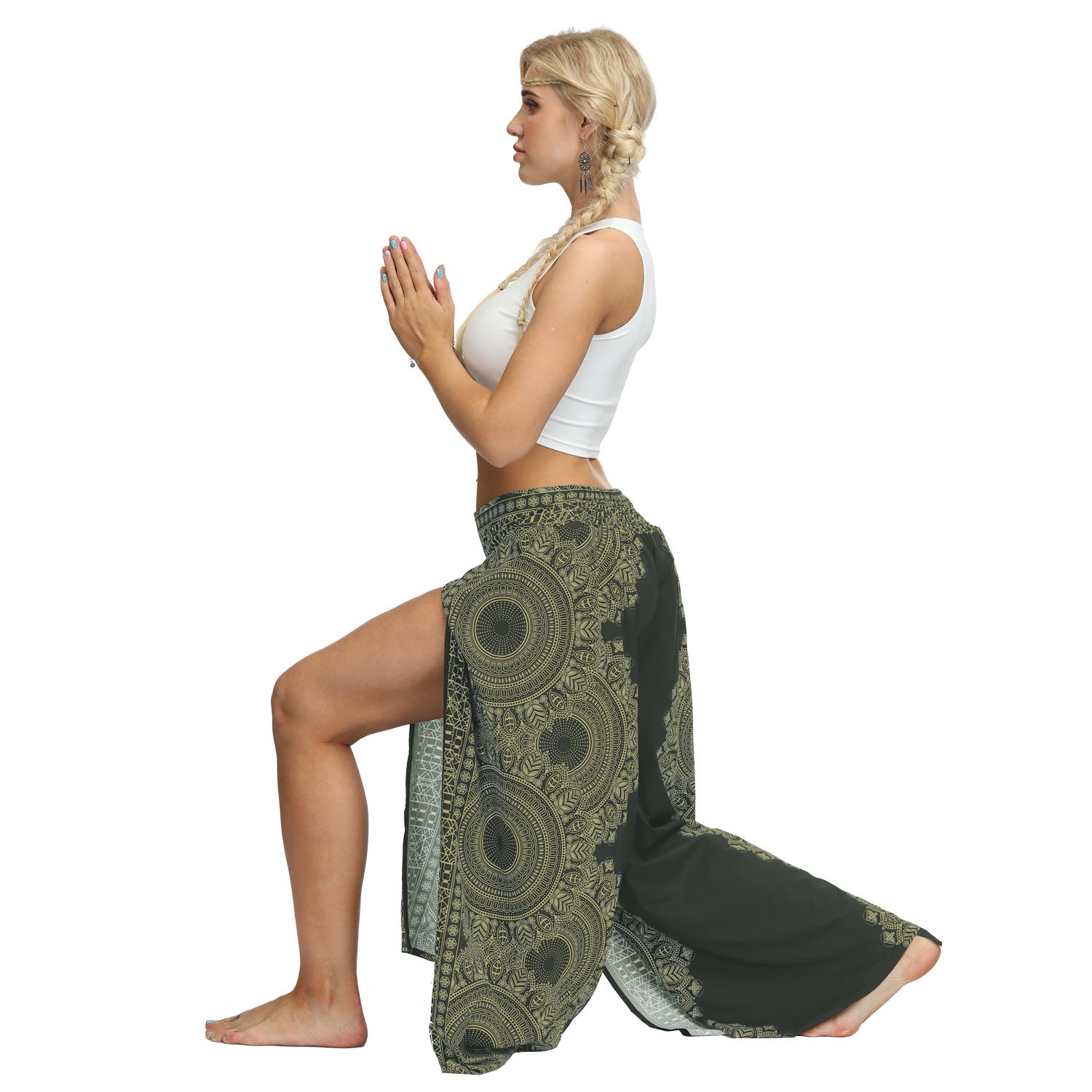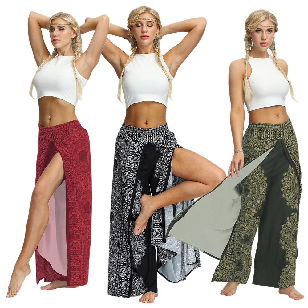 Ethnic Print Loose Slit Wide Leg Pants Women's Fitness Sports Yoga Dance Pants